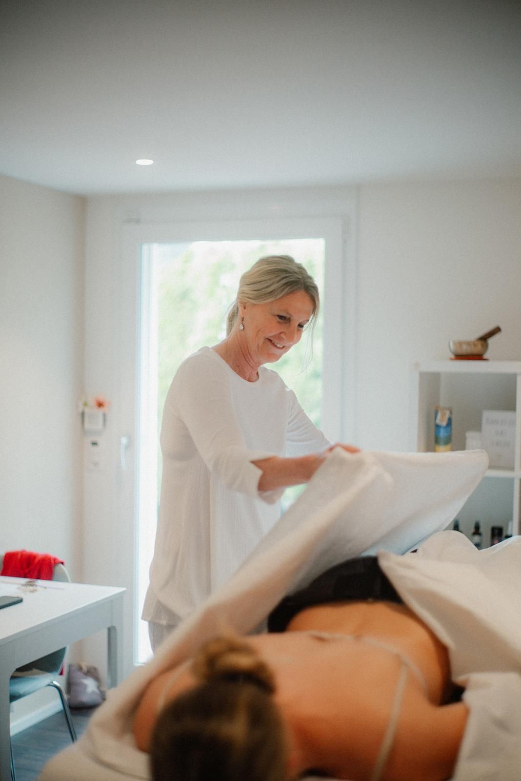 Sanfte Berührungen und farbaktivierte Bio-Öle aktivieren die Chakren entlang des Rückens. Auf der Vorderseite stimuliert gezieltes Licht die Energiezentren. Atemarbeit kann dabei helfen, Blockaden zu lösen und tiefgreifende Veränderung zu ermöglichen. Eine sanfte Unterstützung für mehr Leichtigkeit.